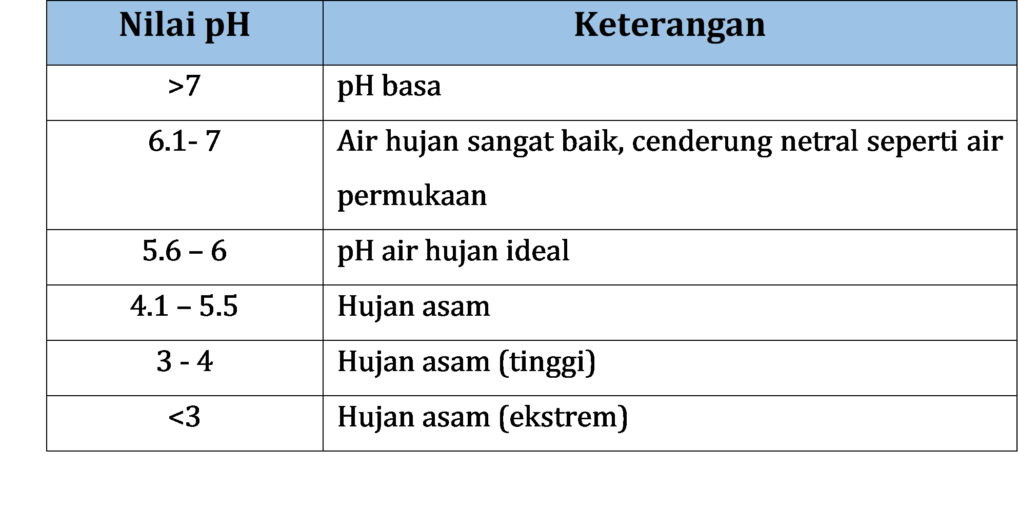 Rentang nilai pH Air Hujan
